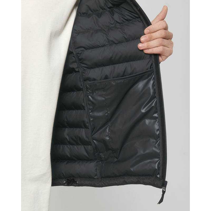 Kvalita.Vnější vrstva: 100 % recyklovaný polyester taffeta s TPU vrstvou.Podšívka: 100 % recyklovaný polyester taffeta 400T - Výplň: 100 % recyklovaný polyester s péřovým efektem 360 g/ks.Styl.Pohodlný padnoucí střih.Sladěné barevné lemování.Kapuce s výplní a se stahovacími šňůrkami, kovovými očky a gumovými koncovkami.Lepené švy na kapuci, ramenou a rukávech.Hlavní zapínání s vstřikovaným plastový zipem a dvoucestným kovový stahovákem zipu.Hlavní zapínání s krycí légou, zapnutím na magnet u límce a lem pro maximální ochranu před chladem.Boční kapsy s vodoodpudivým s inverzním zipem.Pružná podšívka na manžetách pro ochranu před chladem a pohodlí.Měkká prošívaná podšívka uvnitř.Příjemná silná výplň.Vnitřní našitá kapsa se zapínáním na magnet.Svislá vnitřní kapsa vlevo se zakrytým zipem.Vnitřní zip ve spodní části zad pro přizpůsobení.Vnitřní límec s podšitím ze svrchní tkaniny pro přizpůsobení.