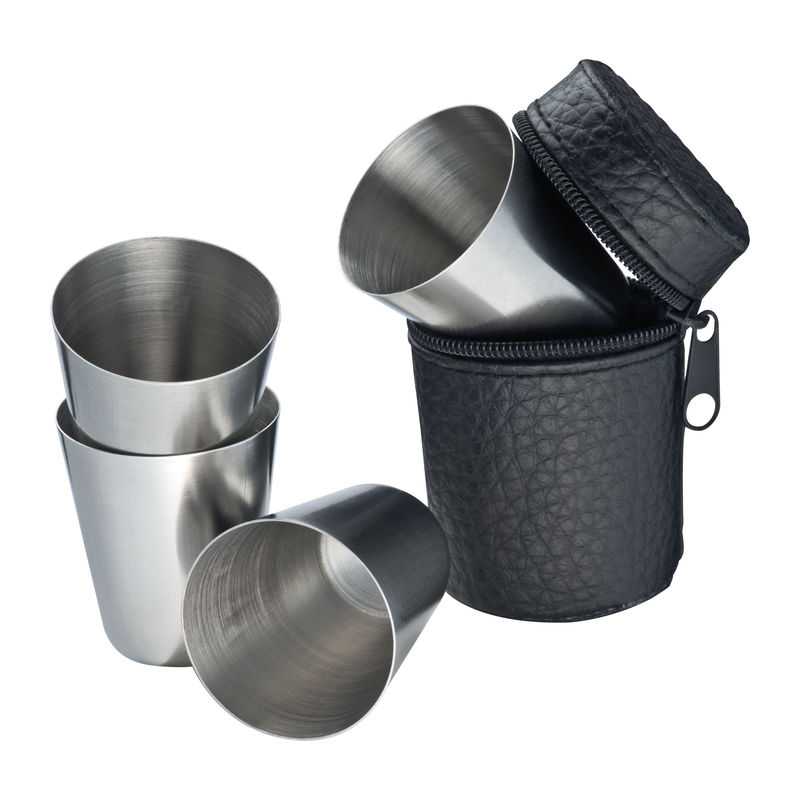 NOVINKA 2024. 4 poháriky z nerezu v puzdre z umelej kože.