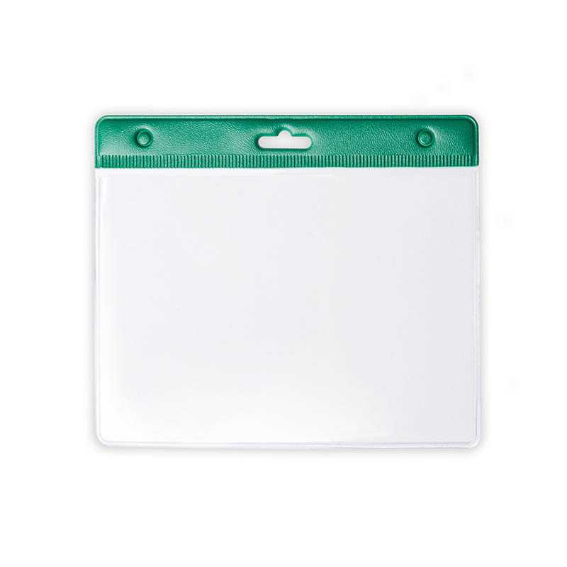NOVINKA 2025. Vertical PVC identifier. Practical badge holder with reinforced top and perforations for both central and side fastening.