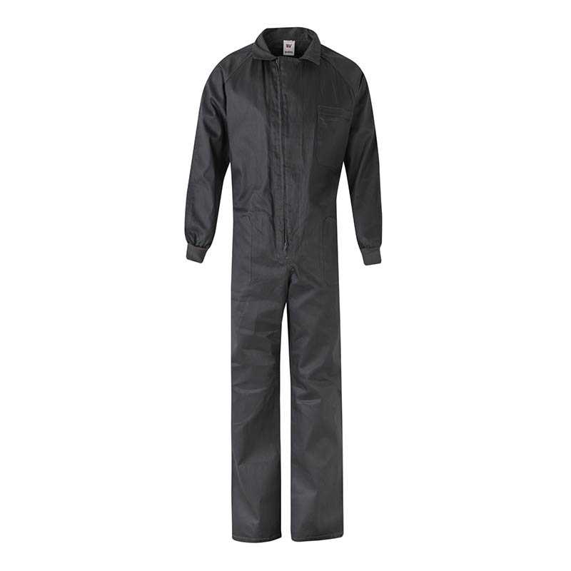TWO-TONE OVERALL 65% polyester- 35% cotton - Covered full zip - Mandarin collar with velcro closure - Piping on collar, sleeve, chest and back - One chest pocket with double pen holder - Two opened pockets on front side - Elasticized fabric at waist on back side - Elasticized cuffs with velcro closure