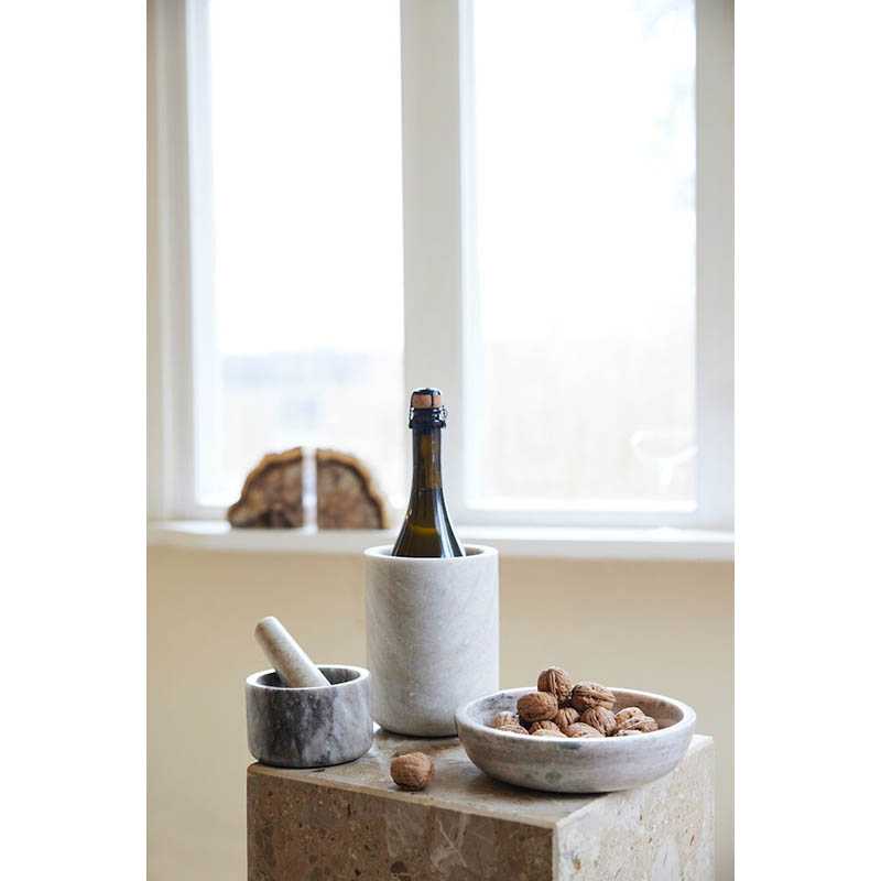 Sten mortar is a cherished member in the kitchen, alongside Sten bowl and wine cooler. With its compact size, it's an indispensable asset that can always be kept on display. Made of travertine marble, renowned for its durability and strength, this mortar is perfect for kitchen use. It withstands heat and is resistant to scratches, making it a reliable and long-lasting companion for cooking and serving. Designed by Studio Sagaform. Delivered in a classic gift box. Material: Travertine marble Weight: 1500 g Dimensions: Width: 11 cm; Height: 6,5 cm Color: Beige Technique: Handcrafted; color and texture variations may occur.
