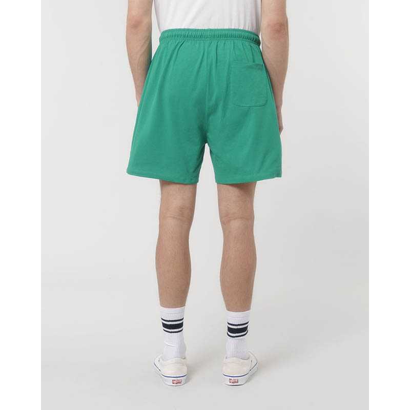 Self fabric elastic waistband Hidden flat drawcords on inside waistband Pockets at front Patch pocket at back Bottom hem with narrow double needle topstitch