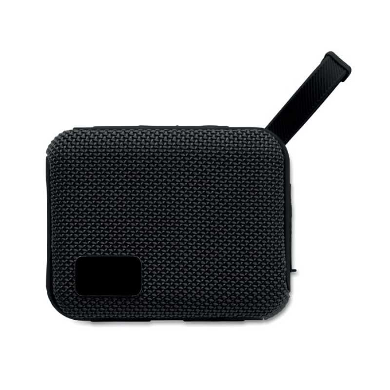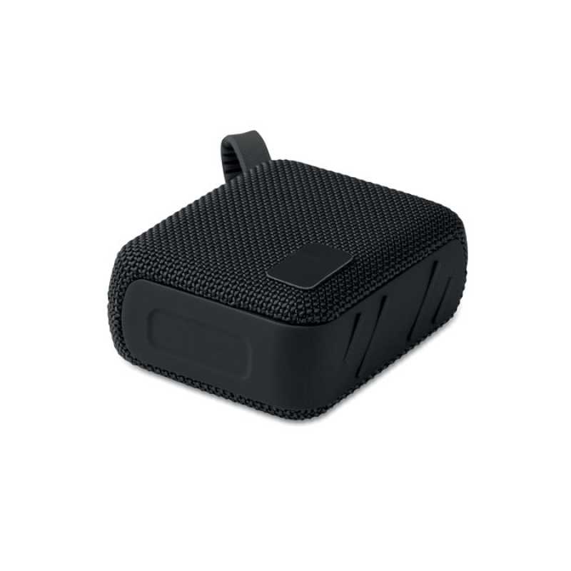 Bezdrátový 5.0 reproduktor z ABS s RPET tkaninou a poutkem. Obsahuje dobíjecí baterii Li-ION 800 mAh. Port pro SD kartu a kabel AUX/USB. Výstupní data: 5W, 3Ohm a 5V. Doba přehrávání cca 3h.