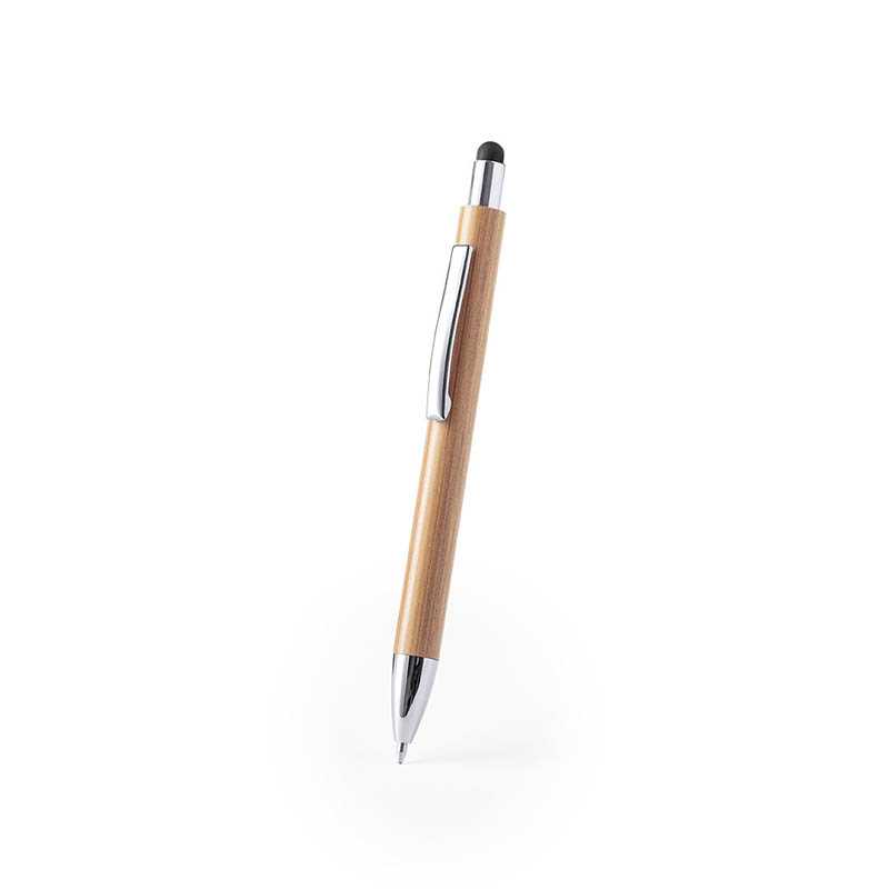 NOVINKA 2025. Nature line pointer ball pen, with bamboo body, chrome accessories and black color pointer. Push-up button mechanism, metal clip and jumbo cartridge with blue ink.