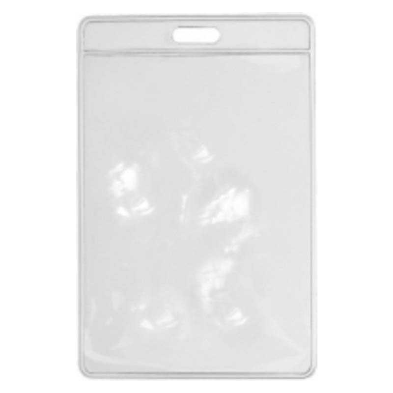 NOVINKA 2025. Vertical PVC identifier. Practical badge holder with reinforced top and perforations for both central and side fastening.