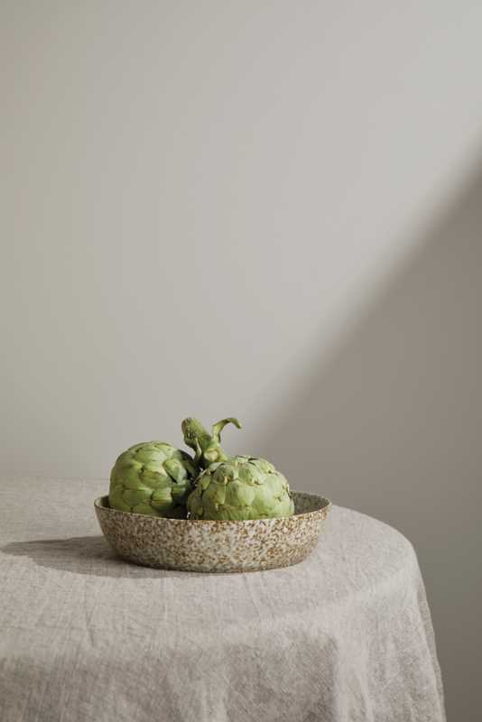 We add flowers but in different texture and material. Dagny plate is inspired by the lovely leaves of the daisy and becomes a beautiful addition on the table, in all its simplicity or as a serving plate. Dagny deep plate is available in two different neutral colour combinations and two sizes. Both will be a wonderful complement to your everyday porcelain. Fabrics: Dolomite Care instructions: Dishwasher Safe Size: o27x5,5cm