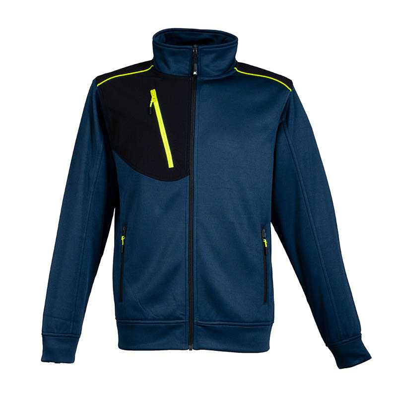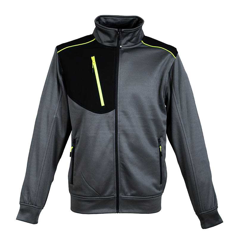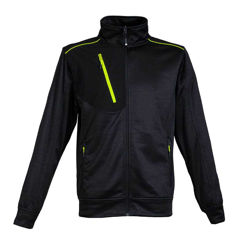 NOVINKA 2025. Sweatshirt with anti-pilling microfleece interior - High neck - Long zip - Black stretch fabric on chest, shoulders, back, elbows and forearms - Fluorescent yellow piping on the front and on the back - Two pockets with black zips - One chest pocket with fluorescent yellow zip - Eyelet holes under the armhole for breathability - Fluorescent yellow inner collar reinforcement tape with hanger fabric - Felled seams