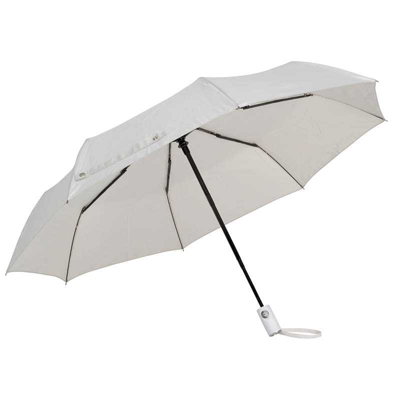 Easy to handle thanks to sliding safety runner, high-quality Windproof PLUS system for maximum frame flexibility in stormy conditions, polyester pongee cover material made of recycled plastics, with waterSAVE® label on the closing strap (with new deliveries), handle made of recycled plastic material with promotional labelling option