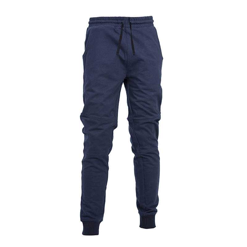 "Cotton - polyester pant - Elastic waist - Ties - Two front pockets - One pocket on back with covered zip - Ribbed bottom leg h cm 5 Weight: 280 g/m2"