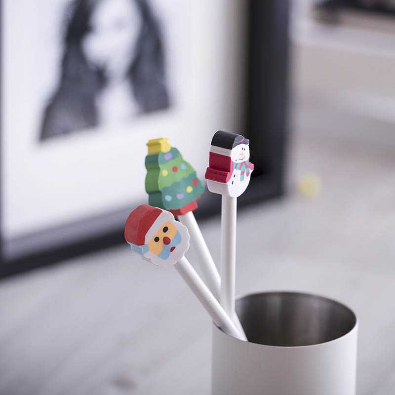 NOVINKA 2025. Wooden pencil with Christmas design, in white colour and glossy finish. With round barrel and available in various Christmas designs. Black lead and unsharpened tip.