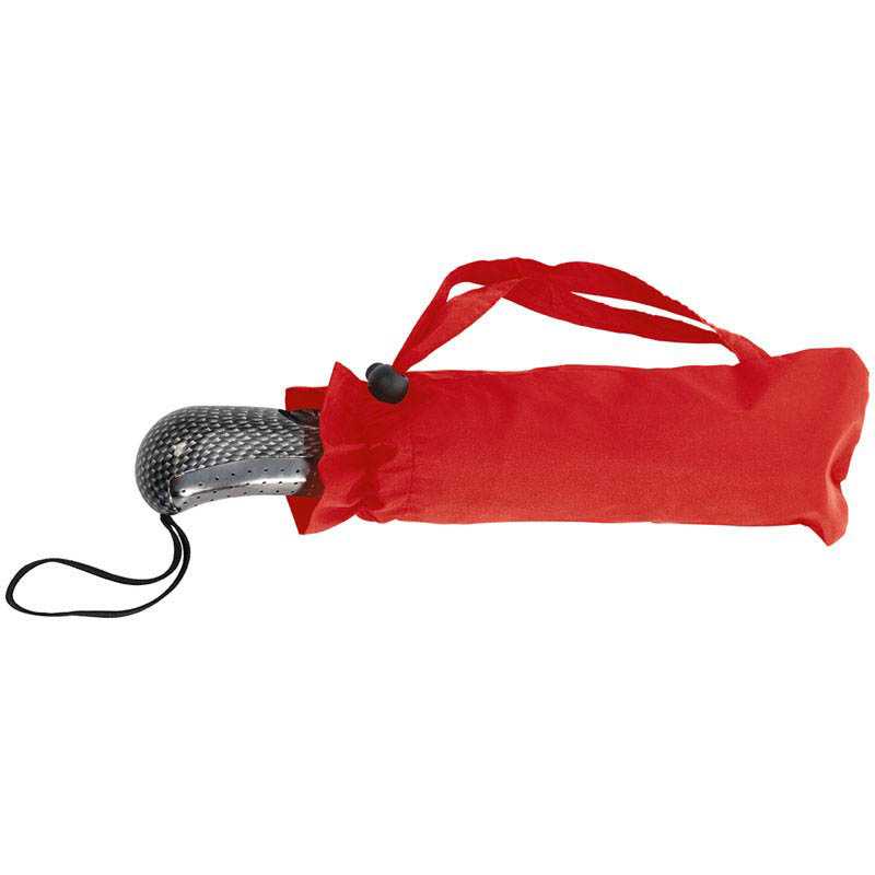 Automatic open/close windproof pocket umbrella ORIANA with sheath in matching colour: 3-section metal shaft, with metal/plastic/fibreglass ribs, rubber-coated handle and carrying loop in matching colour, polyester canopy and sheath with honeycomb structur