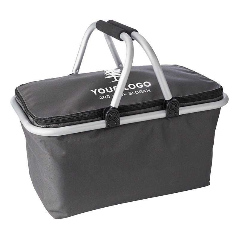 Praktický nákupní košík vyrobený z polyesteru s funkcí chlazení, s krytem na zip. Skládací hliníková konstrukce s integrovaným žetonem pro nákupní koše. Koš lze snadno složit, má nosnost 15 kg. Rozměry 45 x 27 x 40 cm. Logo umístíme sítotiskem.