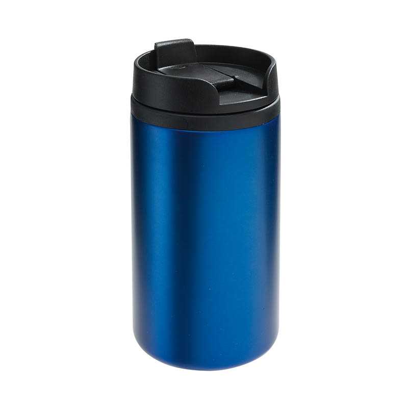 Stainless steel thermos cup (300 ml), double walled. The lid has a drinking opening with cap.