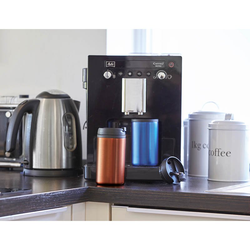 NOVINKA 2025. Table-top insulated cup made of stainless steel with a capacity of 160ml. Includes lid with dispenser and easy-opener. Available in a range of metallic colours. Presented in an attractive design box.