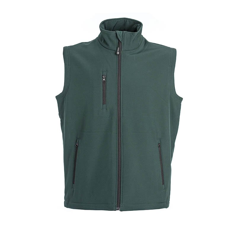 Soft shell waistcoat 2 layer waterproof - 96% polyester – 4% elastan - Waterproof 6000 mm/H2O - Reflective printing on shoulders - Hood with coulisse - One chest pocket with zip - Two pockets with zip - Elasticized fabric on armhole - Elasticized fabric on bottom