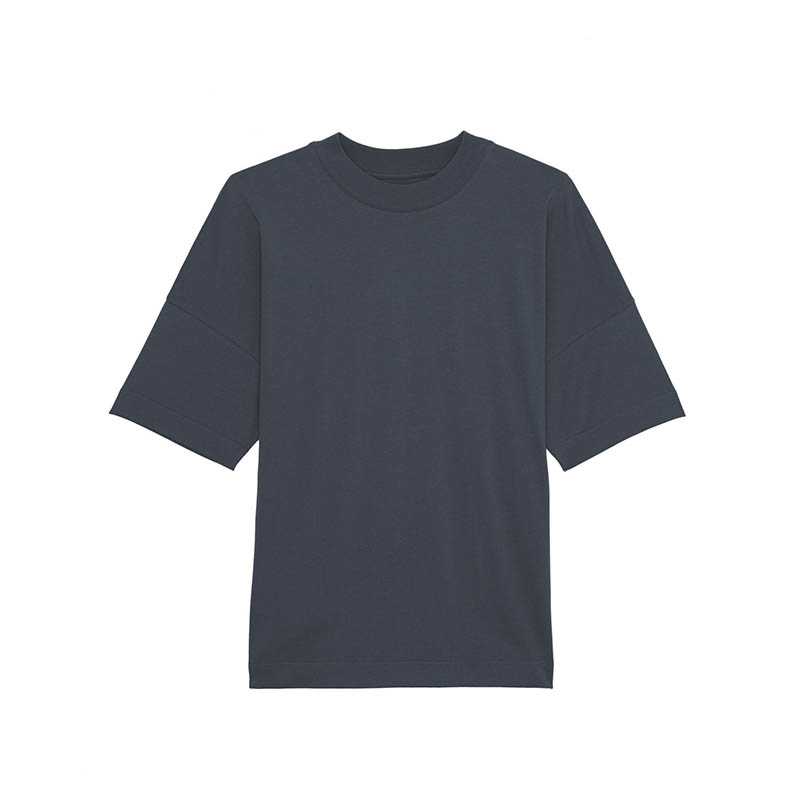 Set-in sleeve Dropped shoulder Wide 1x1 rib neck collar with single topstitch Inside back neck tape in self fabric Sleeve hem and bottom hem with wide double topstitch