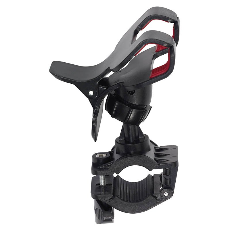 ABS adjustable mobile phone holder for a bicycle. The bracket to hold the mobile phone can be moved in several positions. The holder can be placed on the handlebar and adjusted to fit.