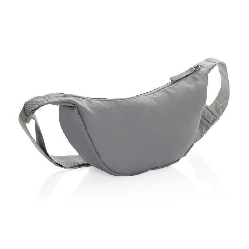 Lehká taška přes rameno; vrchový materiál RPET; hlavní přihrádka na zip; přihrádka na zip na zadní straně; délkově nastavitelný, bočně uzavíratelný břišní popruh s elastickou klopou