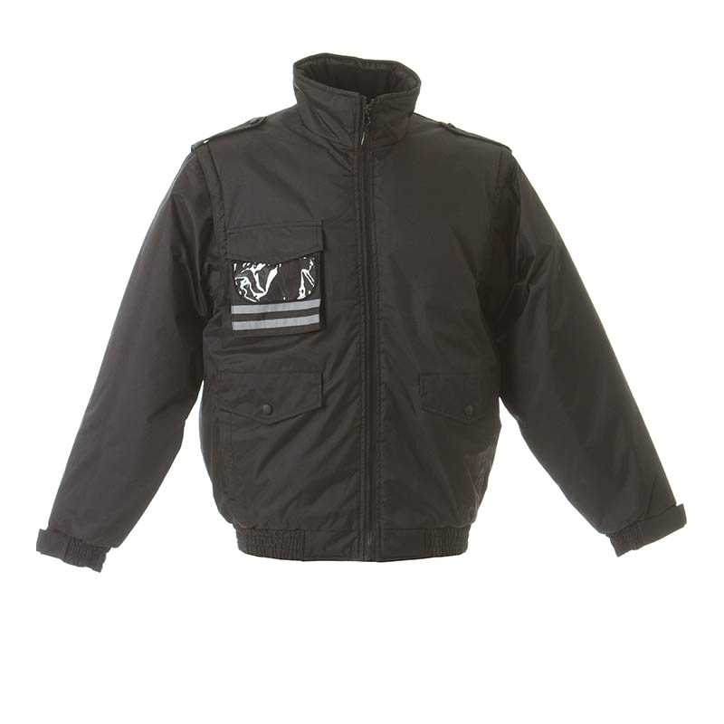 "Ripstop jacket - Detachable sleeves - Polyester padding - Polyester lining - Pull-out hood in ripstop - Reflective details - Chest pocket with fold-away badge-pocket - Two double pocket with flap - Two pockets with zip covered - Inner wallet-pocket - Elas"