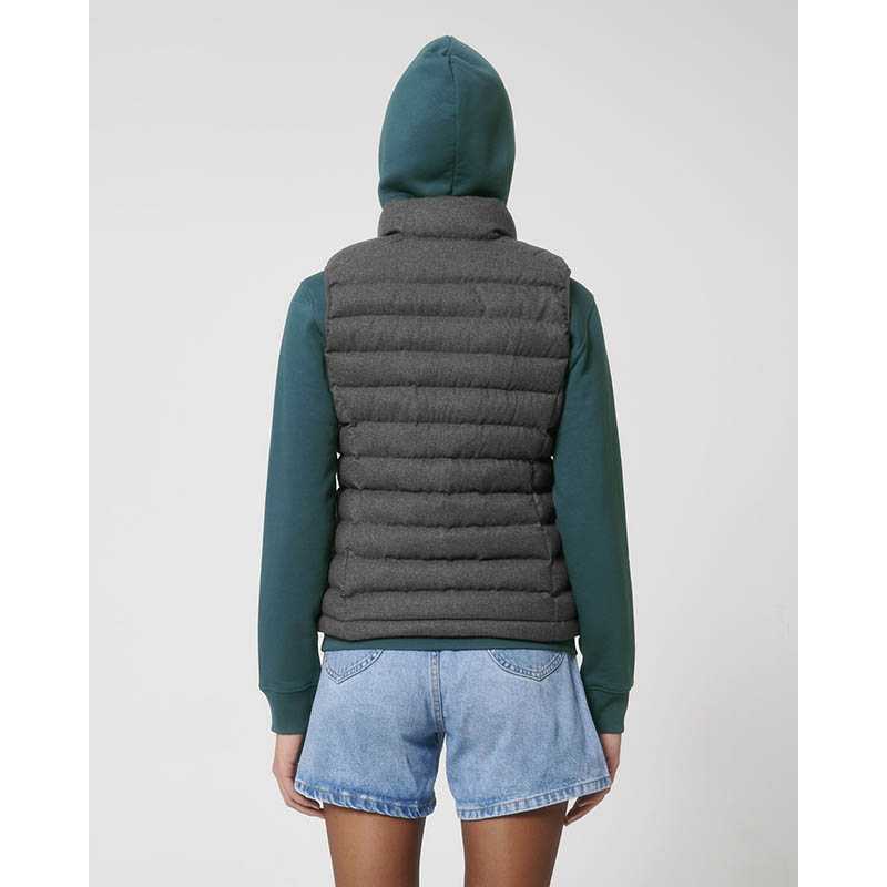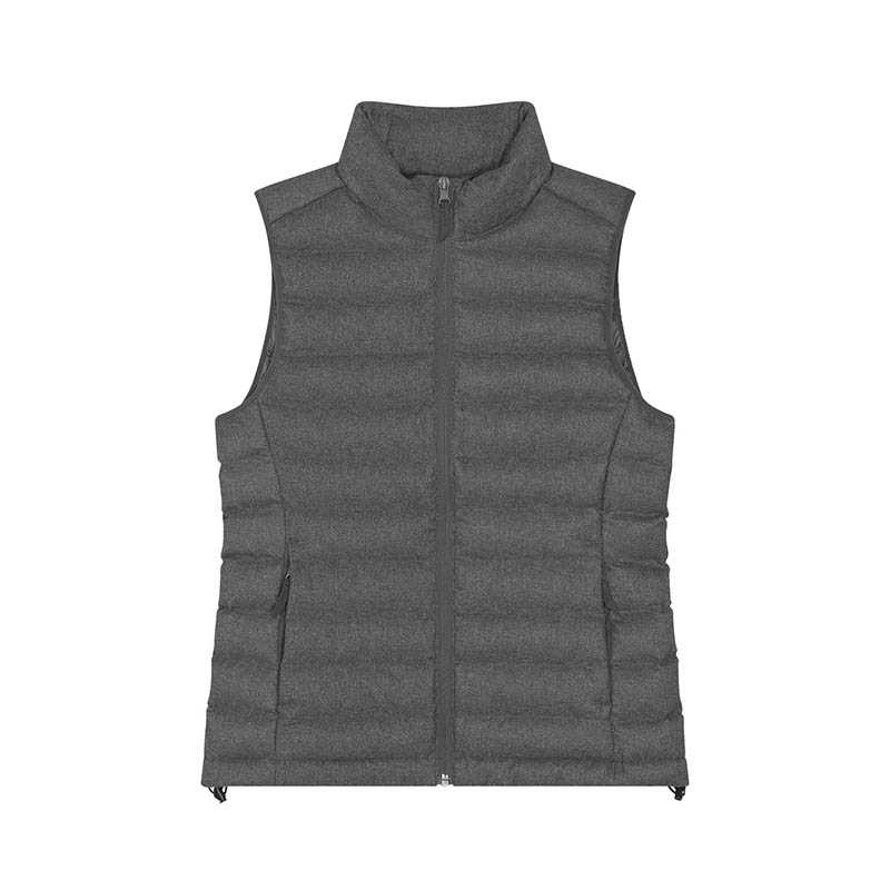 Sleeveless High collar Reverse nylon zip at center front Zipped welt pockets with extra grosgrain puller Elastic tape binding at armhole Fully quilted Side panels for better shape Inside seams with binding finish Bottom hem with adj