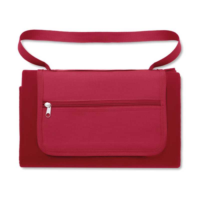 Skládací fleecová deka na suchý zip s poutkem a popruhem přes rameno, ze spodní strany voděodolný PE, 160 g/m2. 1500 x 1200 mm| Složená: o150 x 315 mm