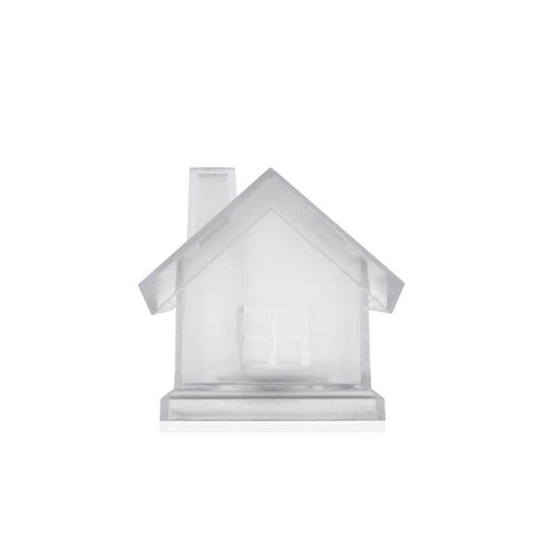 Peněženka ve tvaru domu vyrobená z poloprůhledného materiálu. Na dně je uzamykatelné otevření umožňující vybrat úspory. Logo lze tisknout pomocí techniky tisku na podušku.