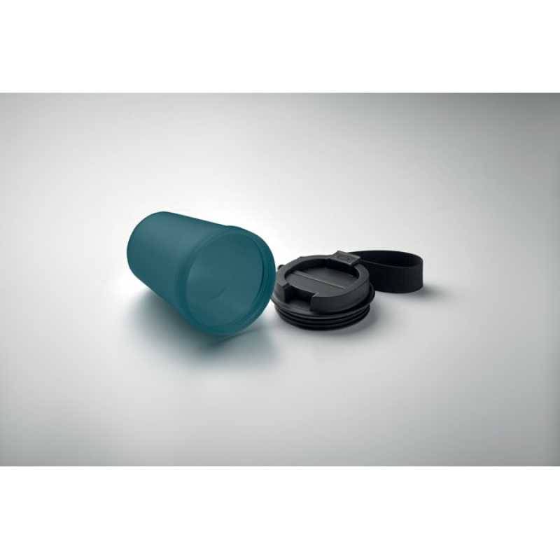 Jednostěnný hrnek z PP s polyesterovým RPET poutkem. Objem 300 ml. Protože se jedná o jednostěnný hrnek, může docházet k přenosu tepla od nápoje.