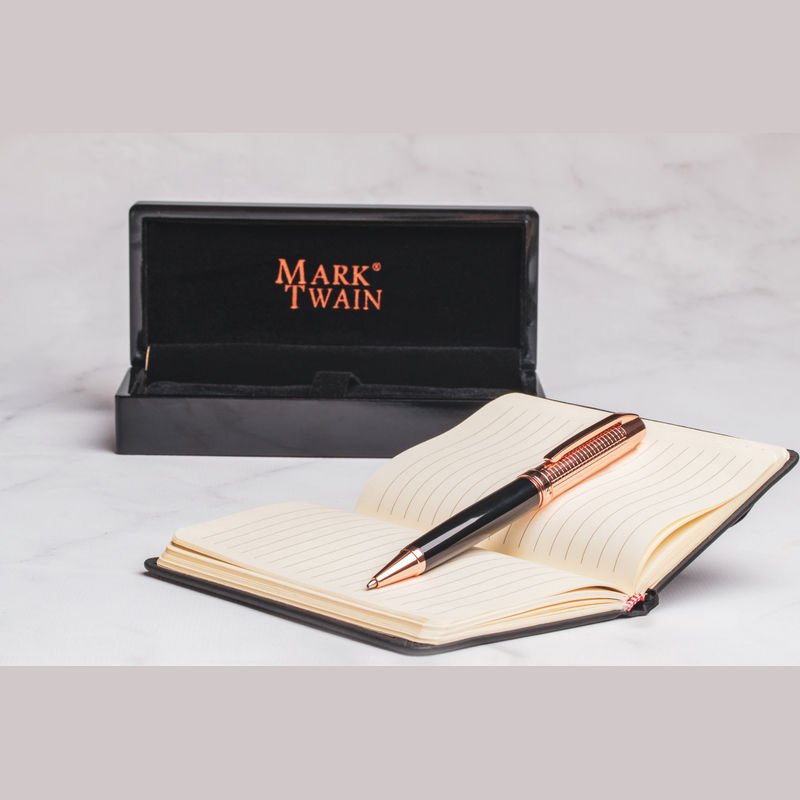 Vysoce kvalitní Mark Twain kuličkové pero s otáčecím mechanismem otevírání. Černý lakovaný design se skvěle hodí k černé krabičce. Rozměry krabičky 17 7 x 5,4 x 3 cm Způsob potisku tamponový tisk na krabičku nebo gravírování na pero.
