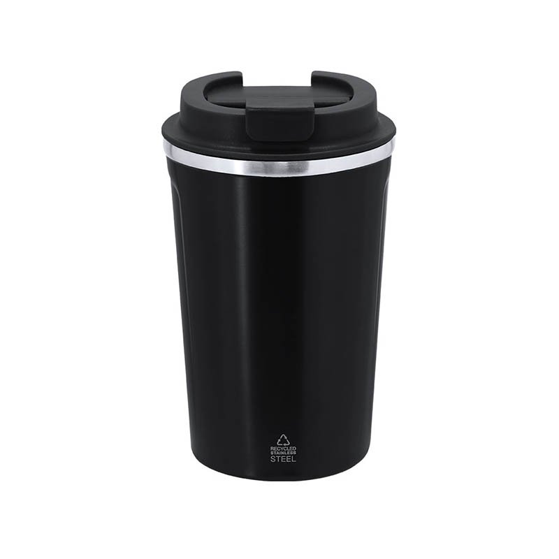 NOVINKA 2025. Thermal mug with double wall made from Recycled Stainless Steel and 400 ml capacity. Lid with easy open dispenser made of PP and BPA-free. Includes a Recycled Stainless Steel label.Steel is one of the most demanded materials and can be found almost everywhere, from daily use products to large constructions. With countless properties, among which durability and high recyclability stand out, making it a highly valued alternative in sustainability solutions. Properly treated, it allows obtaining new resources for infinite use.