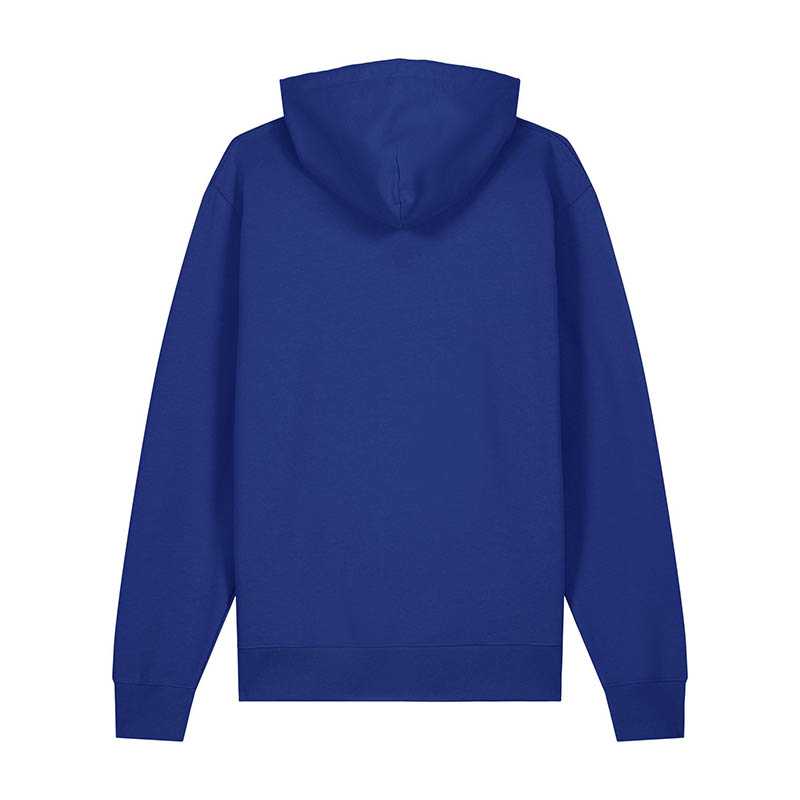 NOVINKA 2025. Set-in sleeve Double layered hood in self fabric Flat drawcords in matching body colour Embroidered eyelets Double needle topstitch on all seams 2x1 ribs at sleeves cuffs and bottom hem Kangaroo pocket at front Inside herringbone back neck