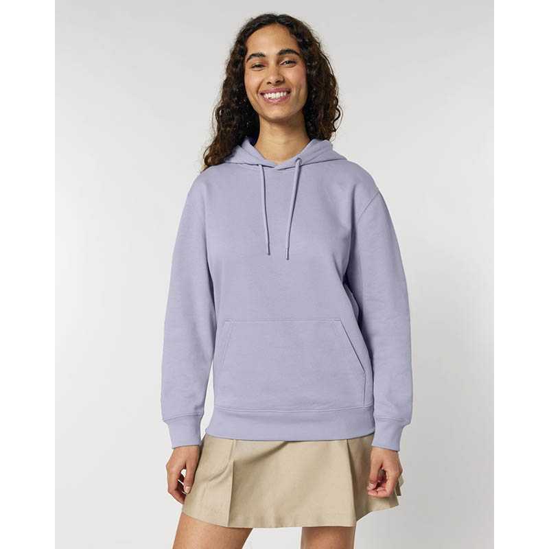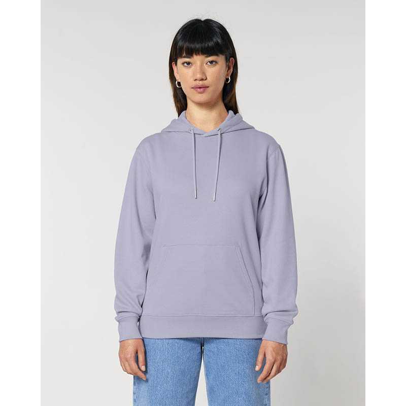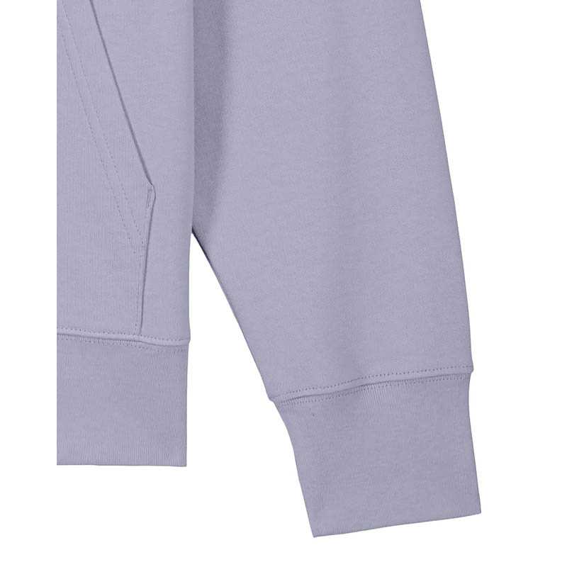 Kruhově dopřádaná bavlna. Designová dvouvrstvá kapuce. Velká klokaní kapsa. Kapsa na rukávu se zipem. Manžety ze sladěné tkaniny