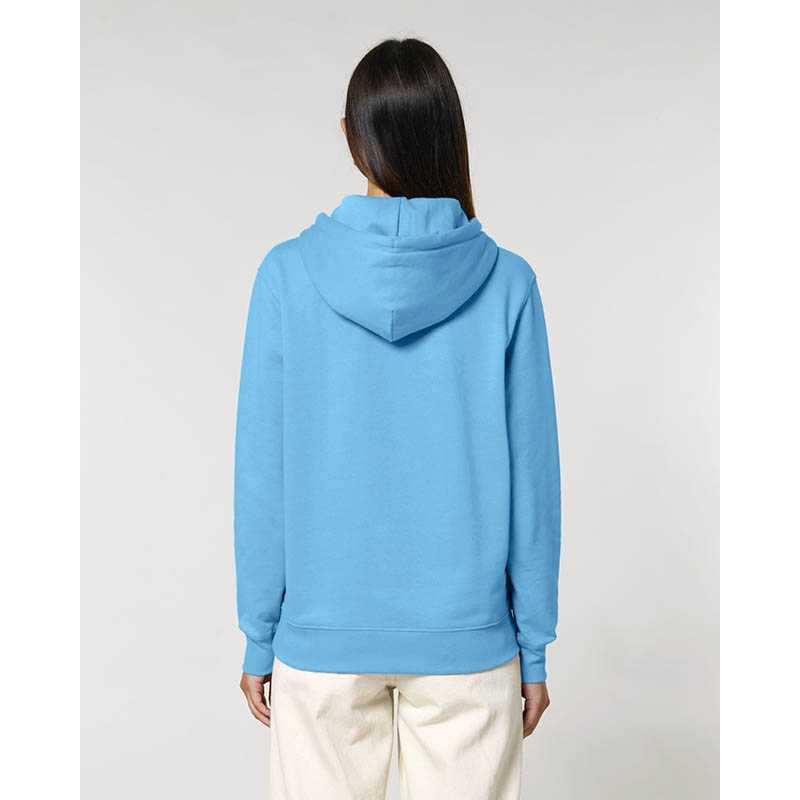 Made from in-house organic cutting waste Set-in sleeve Double layered hood in self fabric Round drawcords in matching body colour with metal tipping Metal eyelets Inside herringbone back neck tape Self fabric half moon at back neck Single needle topstitch