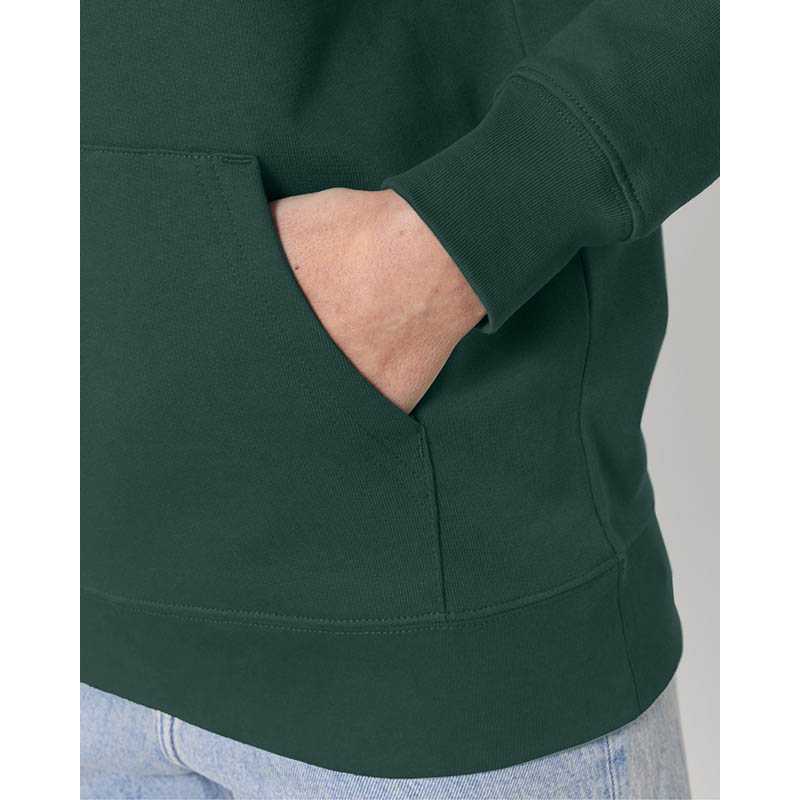NOVINKA 2025. Set-in sleeve Double layered hood in self fabric Flat drawcords in matching body colour Embroidered eyelets Double needle topstitch on all seams 2x1 ribs at sleeves cuffs and bottom hem Kangaroo pocket at front Inside herringbone back neck