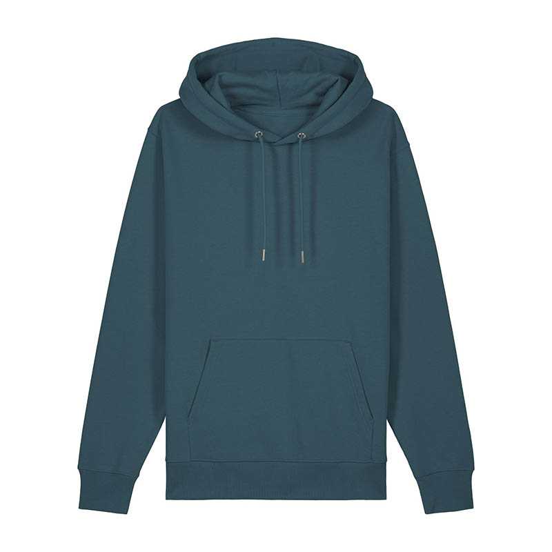 NOVINKA 2025. Set-in sleeve Double layered hood in self fabric Flat drawcords in matching body colour Embroidered eyelets Double needle topstitch on all seams 2x1 ribs at sleeves cuffs and bottom hem Kangaroo pocket at front Inside herringbone back neck