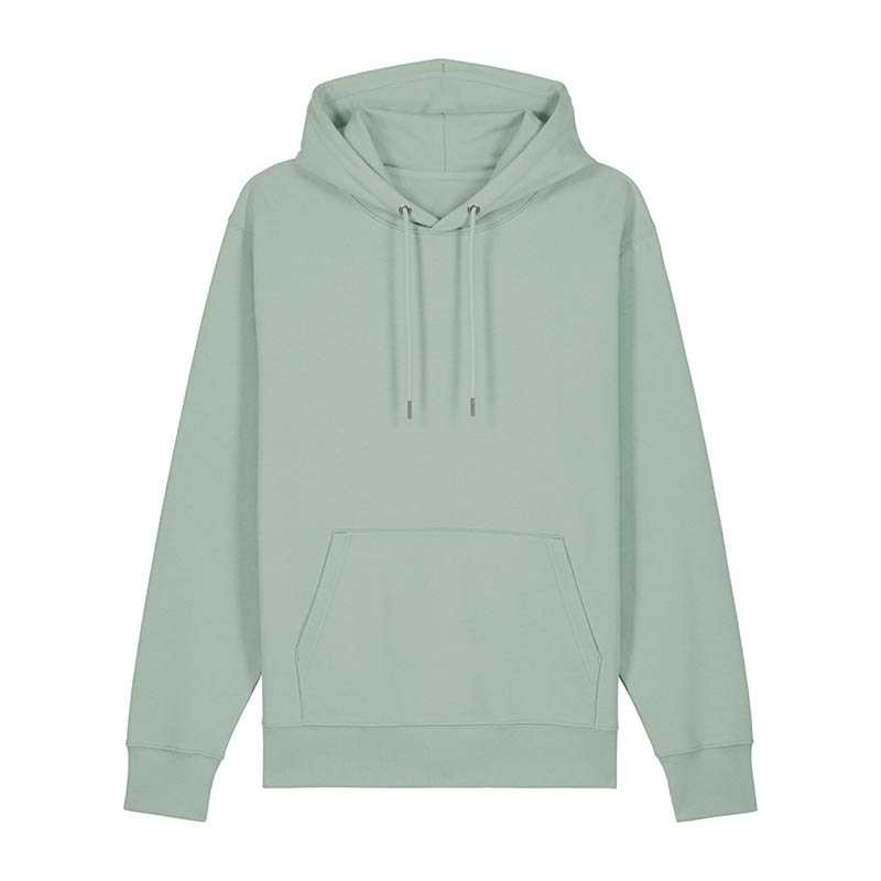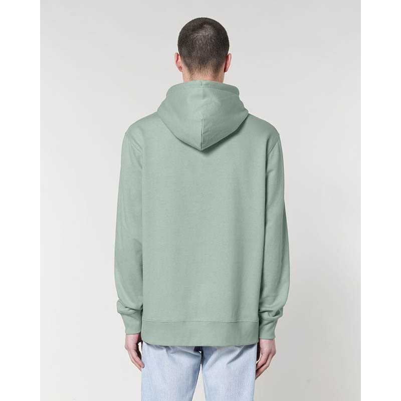 Made from in-house organic cutting waste Set-in sleeve Double layered hood in self fabric Round drawcords in matching body colour with metal tipping Metal eyelets Inside herringbone back neck tape Self fabric half moon at back neck Single needle topstitch