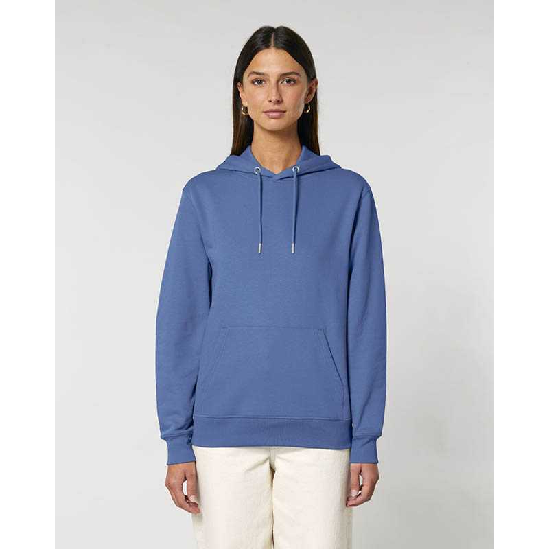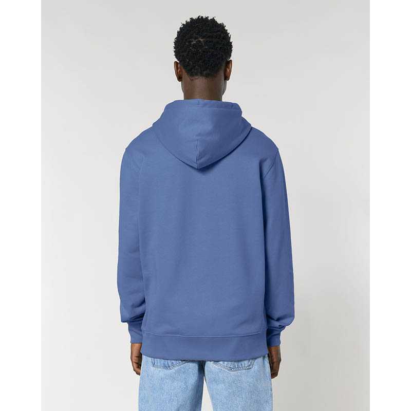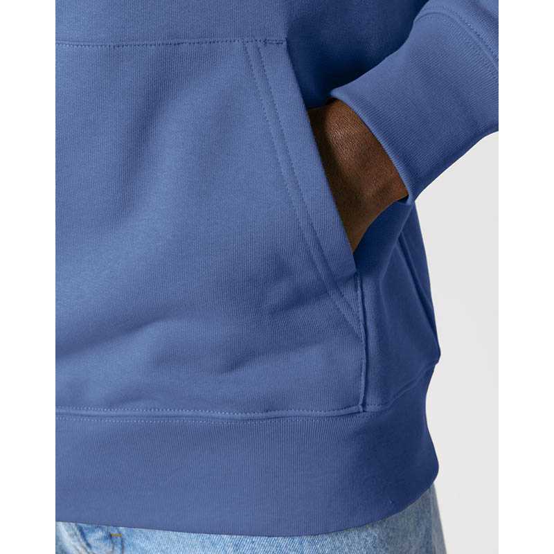 Kruhově dopřádaná bavlna. Designová dvouvrstvá kapuce. Velká klokaní kapsa. Kapsa na rukávu se zipem. Manžety ze sladěné tkaniny