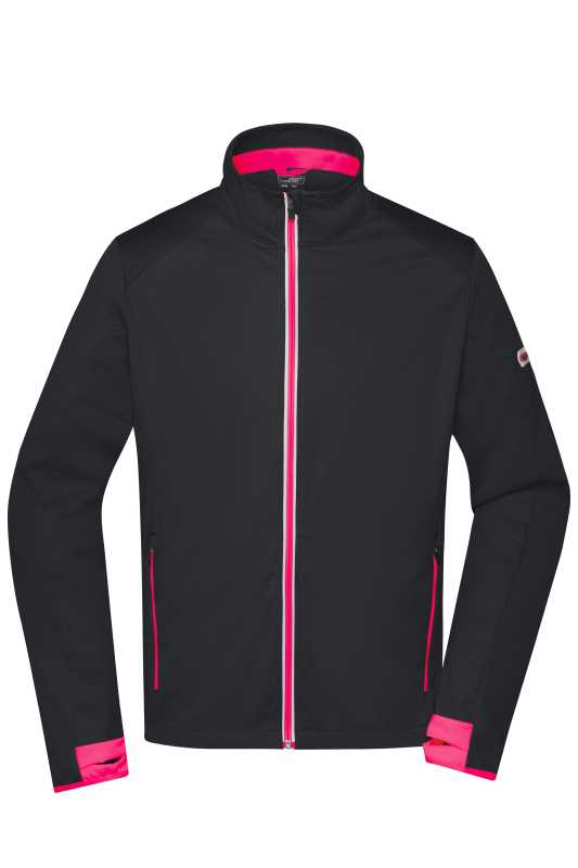 Trendy pánská softshellová bunda James & Nicholson.Vyrobená z 95% polyesteru a 5% elastanu..Funkční 3-vrstvy tkaniny s PU membránou - větru odolná, prodyšná a vodě odolná (5.000 mm vodního sloupce) .Uvnitř z mikro fleece, vnitřní síťovina v přední části .
