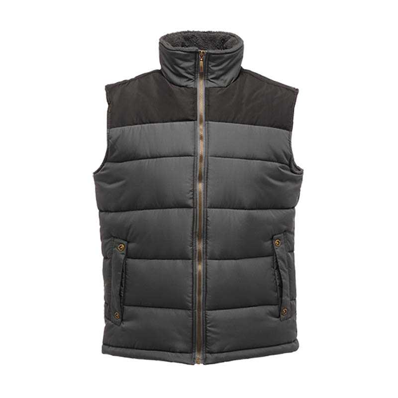 Sleeveless High collar Reverse nylon zip at center front Zipped welt pockets with extra grosgrain puller Elastic tape binding at armhole Fully quilted Side panels for better shape Inside seams with binding finish Bottom hem