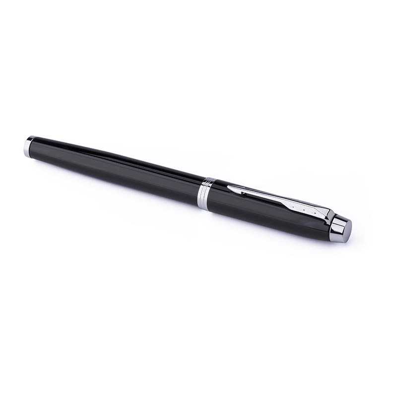Lacquered brass Parker IM rollerball with click mechanism. Black ink. Pen pre-packaged in giftbox.