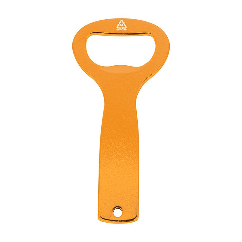 Otvírák na láhve z recyklovaného hliníku s kovovým kroužkem na klíče.