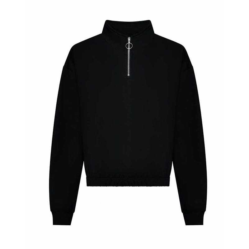 80 % Ringspun bavlna/ 20 % polyester.Standardní střih.Rolákový průkrčník.Se zipem u krku.Crop styl.Pružný spodní lem.Vnitřní česaný fleece.Žebrované manžety.Odtrhávací etiketa.100% bavlněná lícová tkanina.