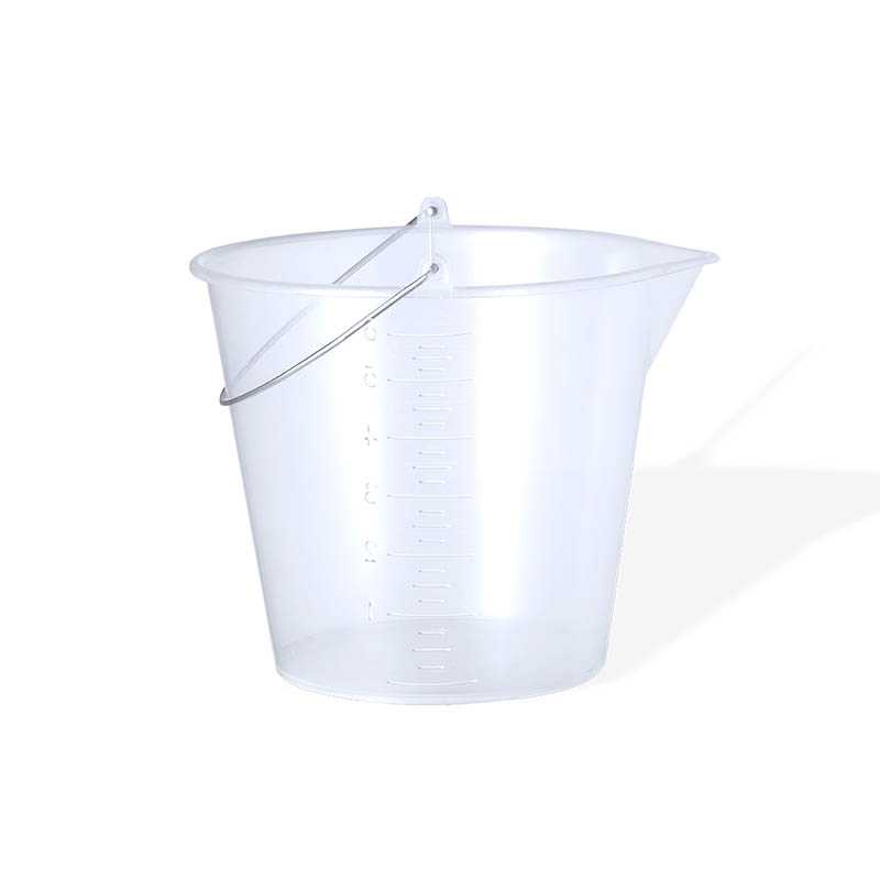 NOVINKA 2025. 11L bucket made of durable transparent PP. With metal handle and side measuring cup in ml for quick and easy viewing. Rounded contour with pour spout to prevent spillage, plus a large branding area.