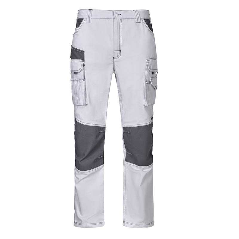 Stretchy Multi-Pocket Work Trousers. Made of complex bi-stretch fabric that enhances mobility with a repellent finish that reduces stains.Hidden button-and-zipped flap fastening, side elasticated waistbands and belt loops for a better adjustment and a comfortable fit.Two slanted hip pockets, two back zippered pockets and two side velcro flap pockets for a secure and convenient storage, a puller for easy opening. Double main seams and extra high-wear reinforcements with safety bartacks, ensuring long-lasting strength and durability. Suitable marking methods: embroidery, stitching and anti-sublimation heat-stickers.Ideal as workwear, uniforms and outdoor activities.