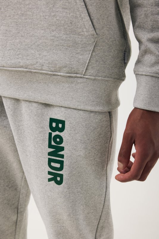85 % organická bavlna / 15 % recyklovaný použitý polyester.Česaná bavlna RingSpun.Česaný 3vrstvý flís, LSF (Low Shrinkage Fleece) flís s malým smršťováním.1 x 1 žebrování v pase se stahovací šňůrkou a knoflíkovým očkem.Boční kapsy a jedna zadní kapsa s lemováním.1 x 1 žebrování lemu.