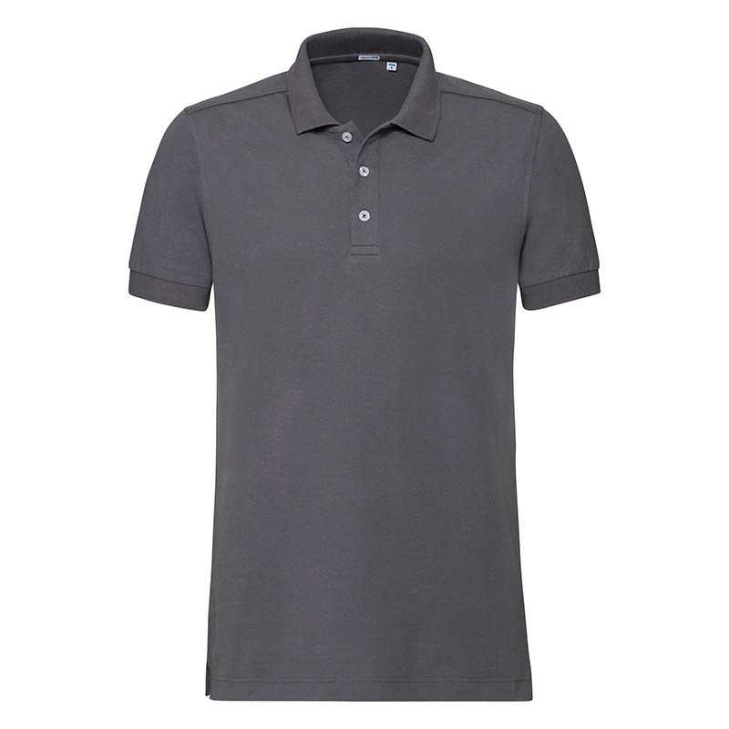 Beautifully soft handfeel. Slim fit. Contrast buttons. Short leaf collar. Strip of self colour fabric along shoulder seam. Shorter side vents with herringbone tape. Značka : RUSSELL . Materiál : 95% bavlna / 5% lycra ; biela 205g/m2 , farebné 210g/m2