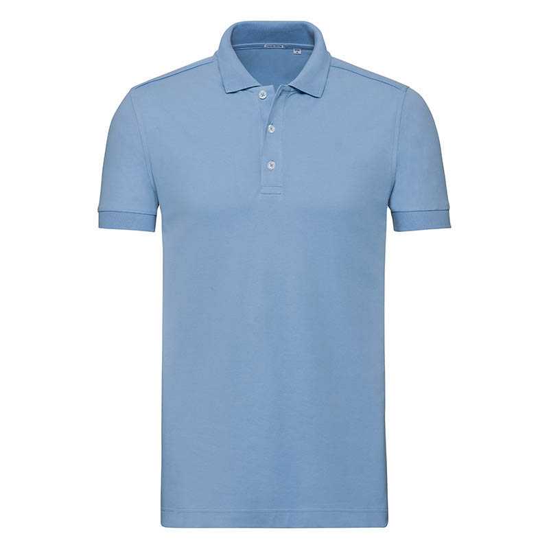 Kvalita.100 % Ringspun bavlna.Styl.Žebrovaný límec a manžety 1x1.Vyztužení lemem na krku.Krátké rukávy.Kontrastní proužky na límci a manžetách.3knoflíková barevně sladěná léga.Vypasovaný střih.Ušito podle střihu.Boční rozparky.Náhradní knoflíky na vnitřním švu.
