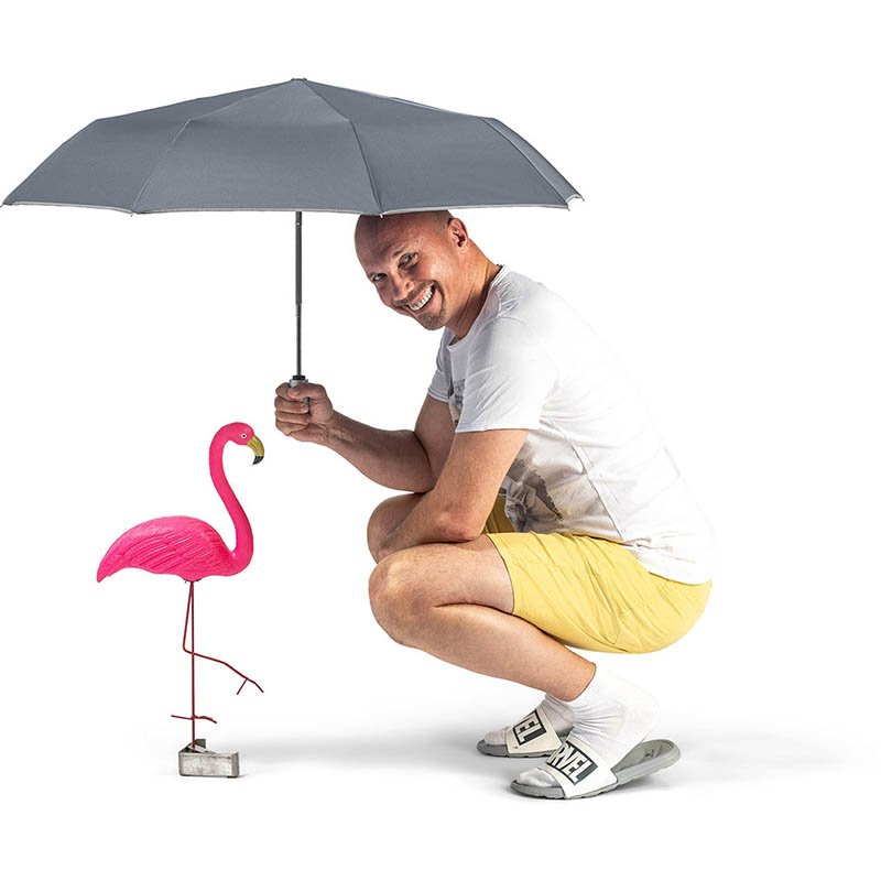Easy to handle thanks to sliding safety runner, high-quality Windproof PLUS system for maximum frame flexibility in stormy conditions, plastic handle with carrying loop made of cover material colour-coordinated with the cover, special handle with silicone ring to ensure tight closing of the package, tube made of plastic with rubber lip for draining water and for the safe transport of the wet umbrella