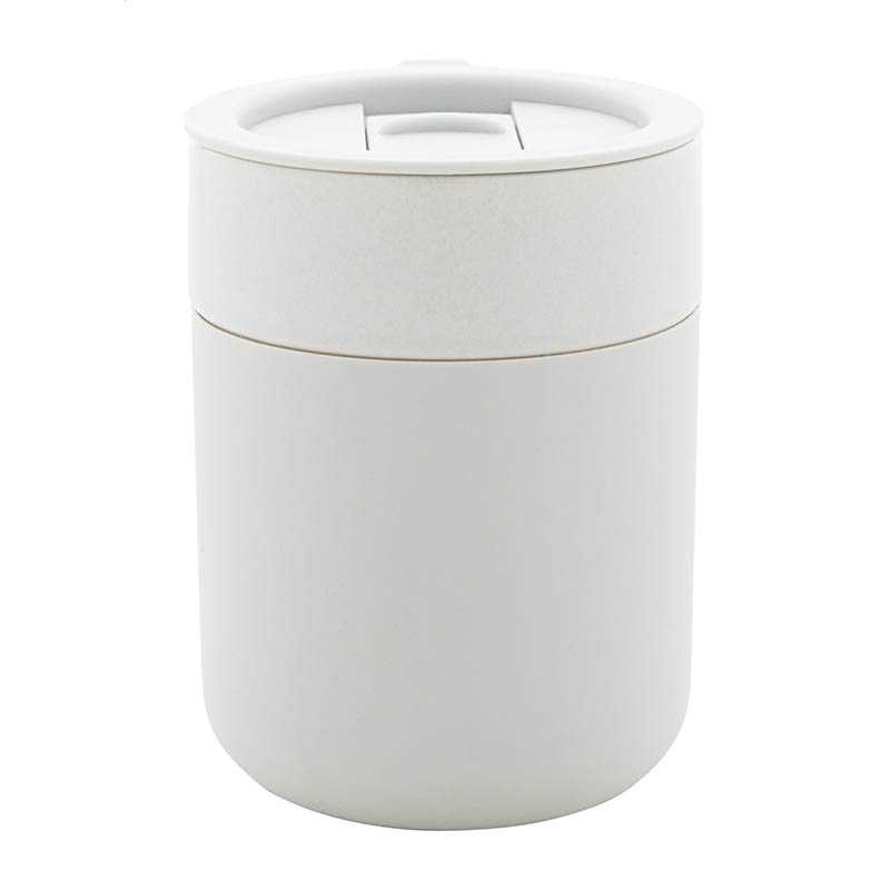 NOVINKA 2025. Double-walled thermal cup made of recycled PP, combined with a base made of recycled stainless steel. With a capacity of 300 ml.With a lid with an easy-opening dispenser and an anti-leak hermetic sealing system. BPA-free.Includes a practical transport strap, ideal for easy carrying in any situation. Food Grade certified, guaranteeing safety when food comes into contact with the material used to manufacture the product. Includes a Recycled Stainless Steel designation.Recycled PP is highly recyclable and strong plastic, suitable for many applications.Steel is one of the most demanded materials and can be found almost everywhere, from daily use products to large constructions. With countless properties, including durability and a high degree of reusability, making it a highly valued alternative in sustainability solutions. When properly treated, it allows for obtaining new resources of infinite use.