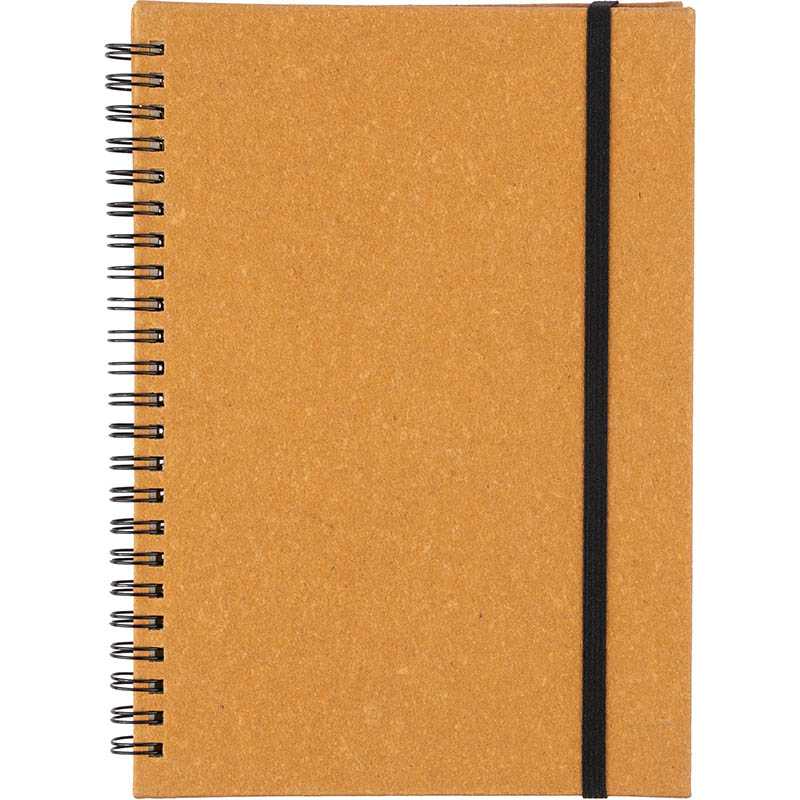Blok A5 z recyklované PU kůže se 100 čistými listy z recyklovaného papíru. Se záložkou v odpovídající barvě a gumičkou.