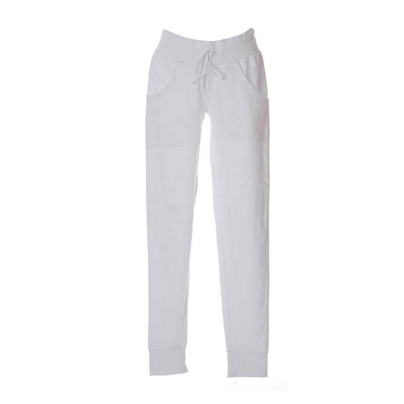 "Woman Pant Made in Italy in French Terry - 80% cotton- 20% polyester - Ribbed band h cm 8 - White ties - Two front pockets - Bottom leg h cm 8Značka : JAMES ROSS . Materiál : 80% bavlna 20% polyester